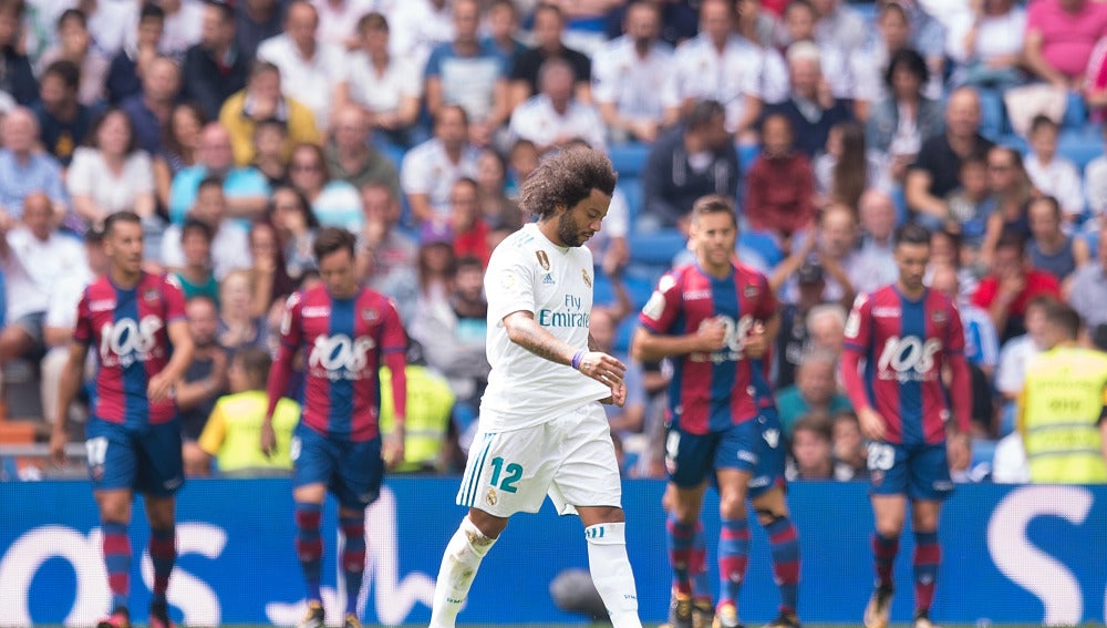 El Comité de Competición ha sancionado con dos partidos a Marcelo por su expulsión en el 89' de partido ante el Levante. El lateral madridista vio la roja por una patada en la espalda a Lerma y la resolución es tajante: "Es una patada a un rival en la espalda, no estando el balón a distancia de ser jugado".
