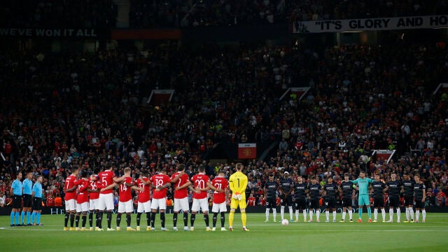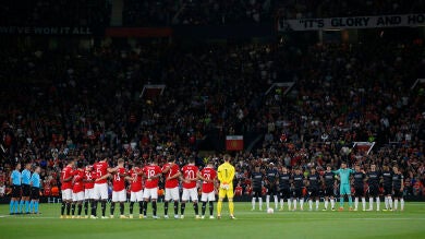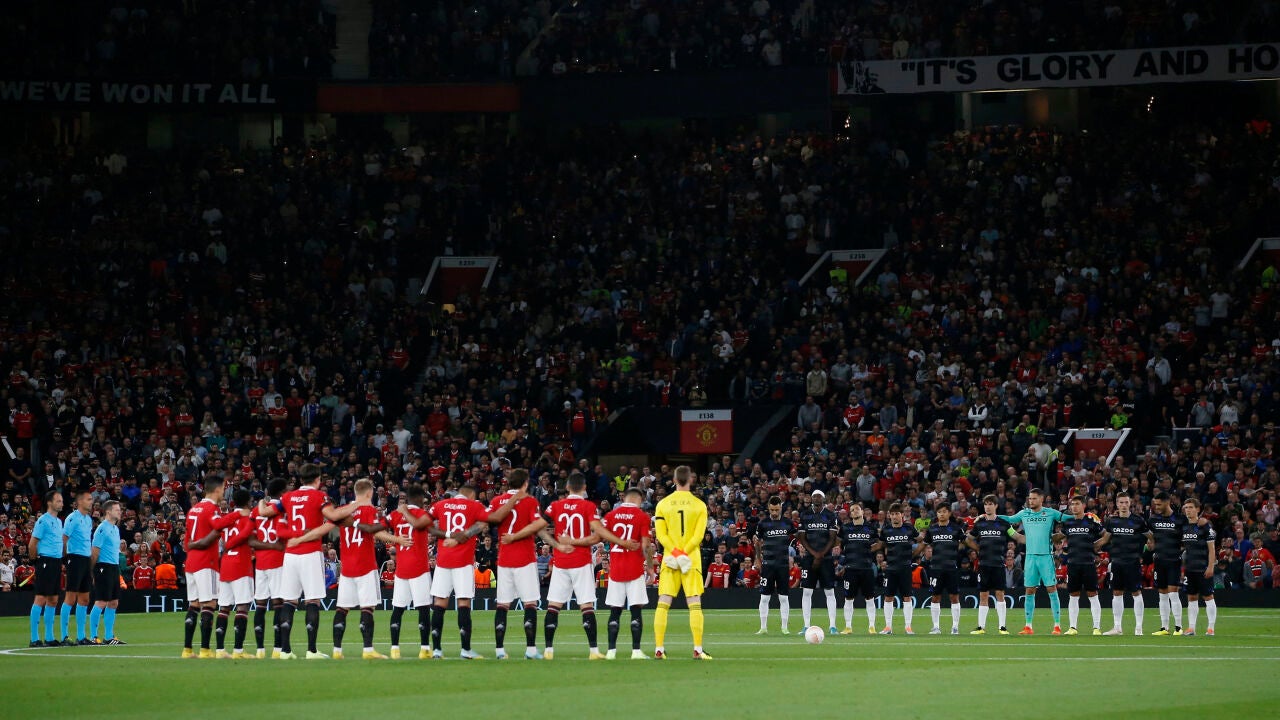 Lo dos equipos se han plantado en el centro del campo y los miles de aficionados que acudieron a Old Trafford se han puesto de pie para rendir un sentido minuto de silencio en memoria de la monarca británica que ha reinado durante siete décadas en Reino Unido.