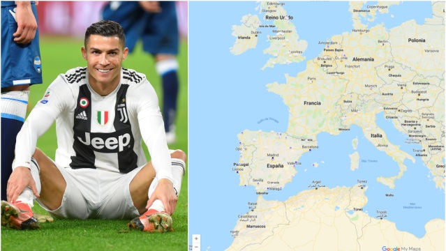 Un usuario ha creado, a través de la aplicación de Google Maps, un mapa interactivo en el que puedes localizar todos los goles que ha marcado Cristiano Ronaldo durante su carrera deportiva.