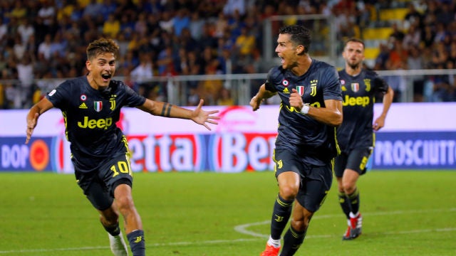 El portugués Cristiano Ronaldo impulsó con un gol a diez minutos del final el triunfo por 2-0 de la Juventus en el campo del Frosinone y, con su tercer tanto de la temporada, mantuvo a los turineses con el pleno de puntos tras cinco jornadas de la Serie A (Primera División).