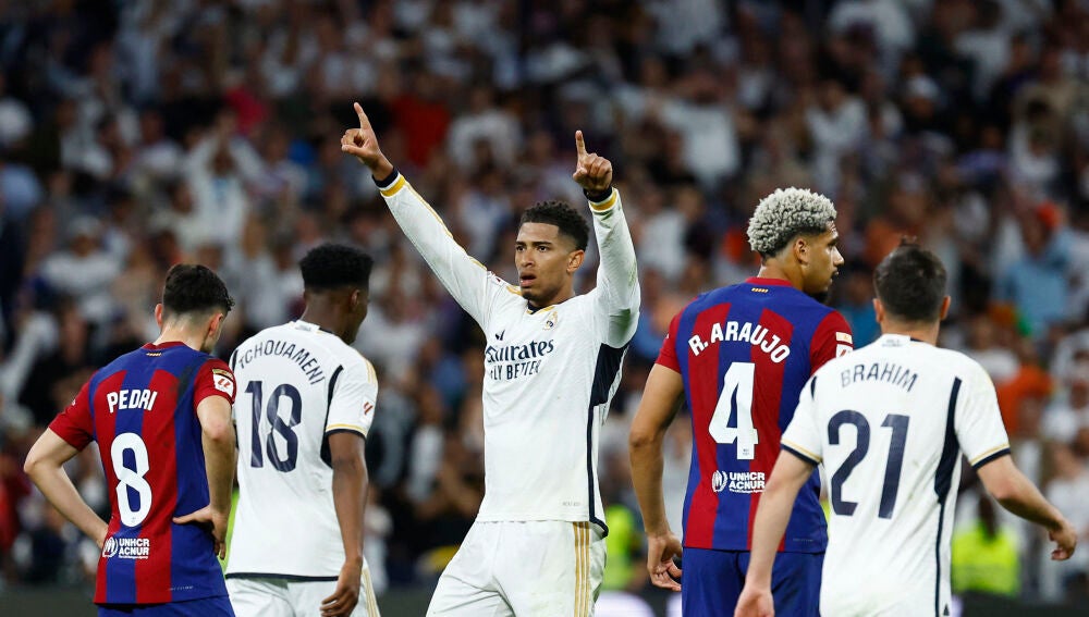 La victoria del Real Madrid en El Clásico ante el Barcelona (3-2) deja LaLiga teñida de blanco y con el título al caer para el conjunto de Ancelotti. El título liguero número 36 es ya cuestión de días y todos los aficionados ya hacen cuentas para saber cuándo el trofeo acabará en las vitrinas del Santiago Bernabéu. Quedan seis jornadas (18 puntos) y el Real Madrid cuenta con una ventaja de 11 y 13 puntos respecto a Barcelona y Girona, respectivamente. El Atlético de Madrid está a 20 puntos de los blancos y ya no cuenta con opciones de ser campeón.