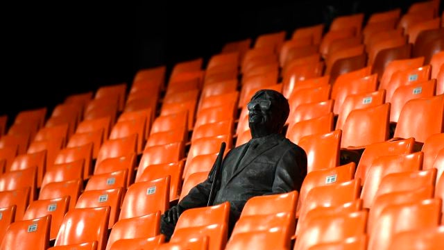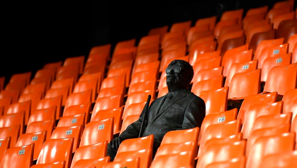 El Valencia - Atalanta de Champions League se jugó en Mestalla a puerta cerrada por el coronavirus. Pero en medio de un estadio vacío llamó la atención la estatua de Vicente Navarro.