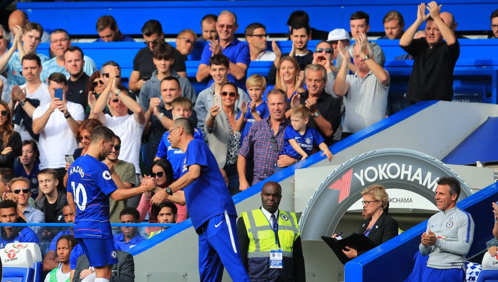 El técnico italianoha asegurado que el extremo belga"en este momento no es un líder" para el Chelsea. "Tenemos algunos jugadores que tienen características para ser un líder. Azpilicueta o David Luiz", aseguró Sarri.