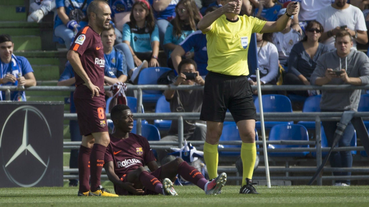 El delantero francés del Barcelona Ousmane Dembélé se lesionó en el partido frente al Getafe y fue sustituido en la primera mitad por su compañero Gerard Deulofeu.