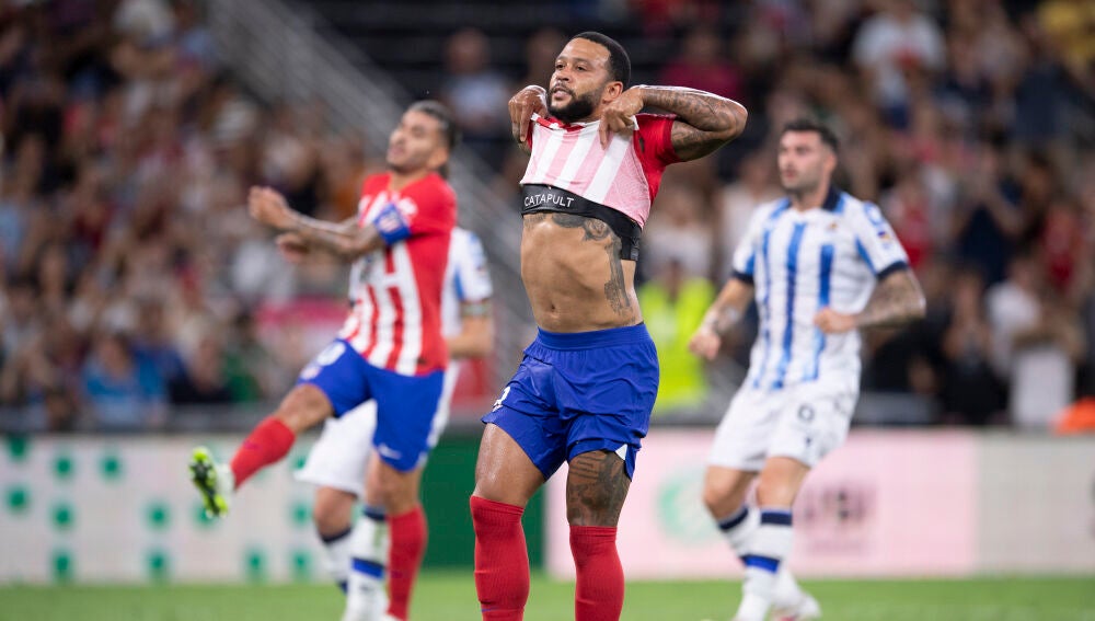 En la segunda parte Simeone introdujo un total de 11 cambios. La velocidad del neerlandés Memphis Depay puso en problemas a la zaga vasca. En el minuto 55 el exfutbolista culé recibió dentro del área chica, pero terminó perdiendo el balón ante portero Gaizka Ayesa después de dos recortes.