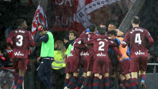 Con la confirmación de la ausencia de Laporte en el equipo local, a la espera de su fichaje por el Manchester City, el partido lo comenzó mejor el Eibar. Que para el minuto 3 ya dio el primer aviso con un intento de vaselina desde lejos de Orellana con el que intentó sorprender a Herrerín. El balón se marchó fuera.