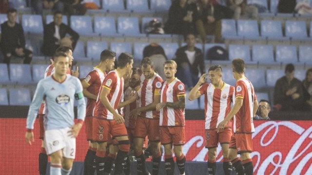Cinco minutos después, antes del cuarto de hora, los de Pablo Machín se adelantaron con un cabezazo de Stuani, que marcó su segundo gol del campeonato. El uruguayo fue el más listo del área tras un error de Hugo Mallo que aprovechó Juanpe.