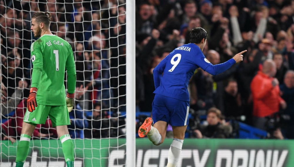 Falló Hazard, pero no Morata, quien en la jugada siguiente, con un testarazo imperial -y la ineficacia de la defensa local, que le dejó solo- tras un centro magnífico desde la derecha de Azpilicueta (quinto pase de gol a su compatriota este año) batió a De Gea y subió el 1-0 al marcador del Bridge.