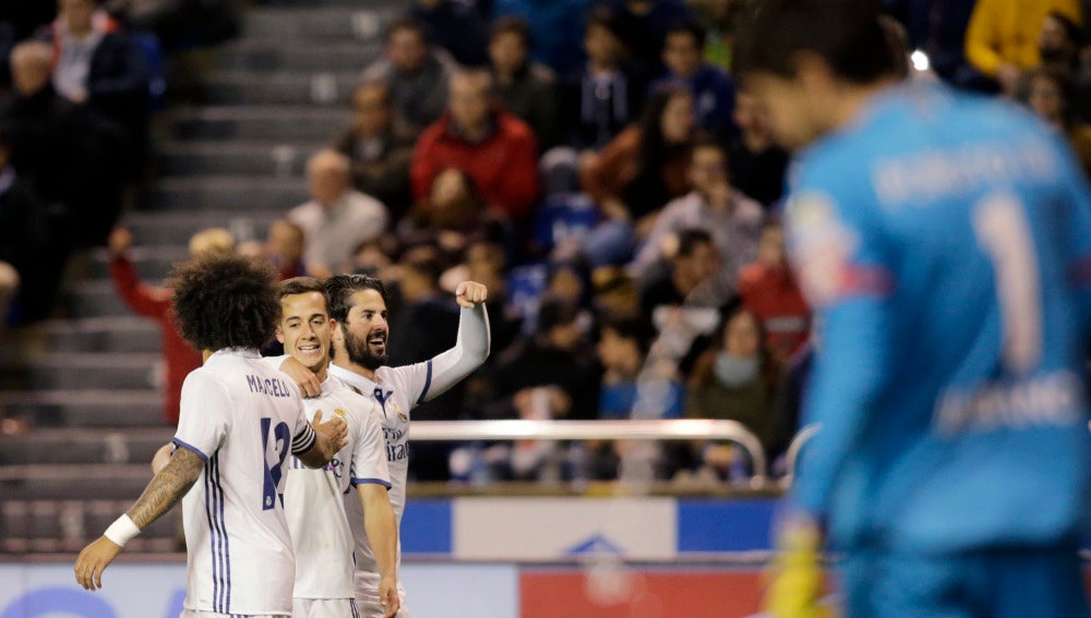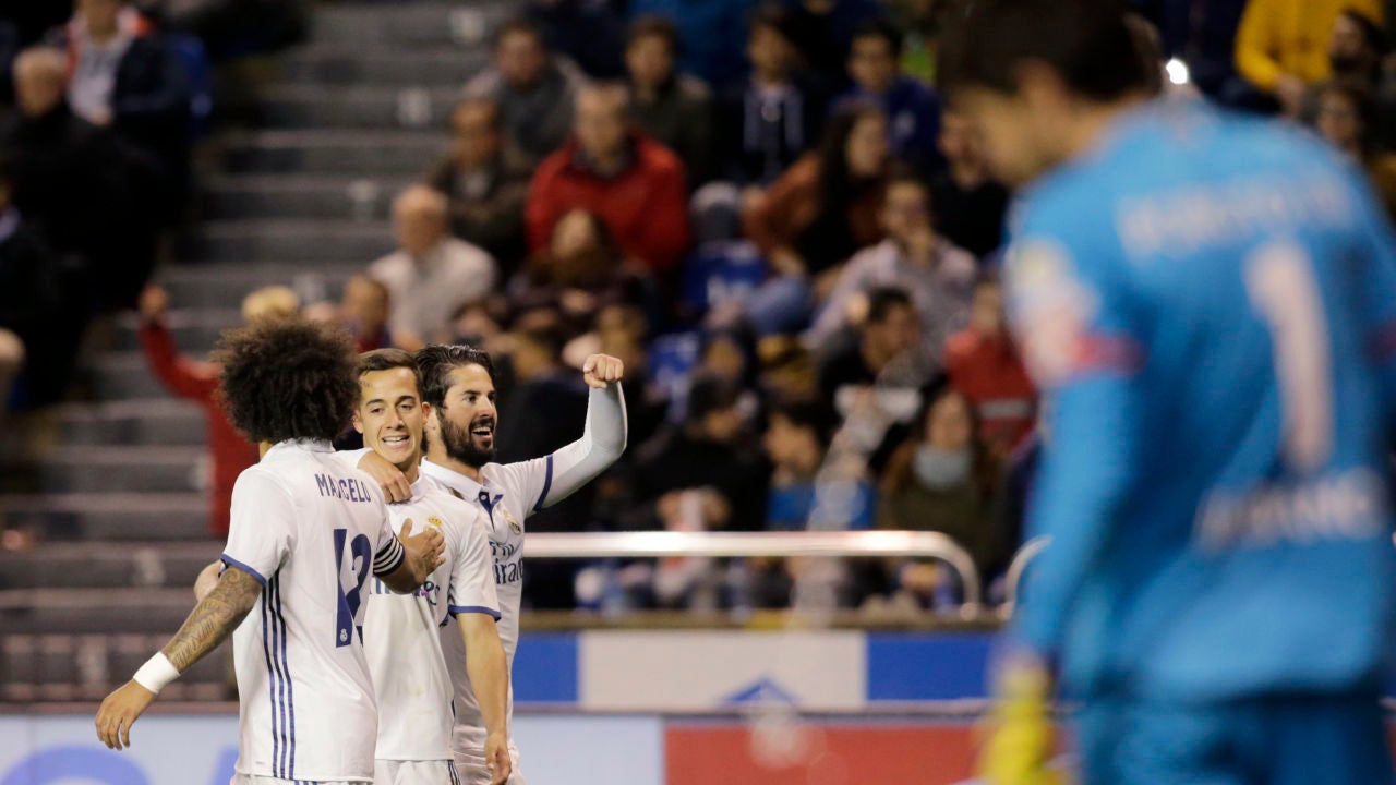 El Real Madrid, comandado por la magia de Isco, goleó a domicilio al Deportivo y mantiene el pulso con el Barcelona por el título de Liga. Morata, un doblete de James, Lucas, Isco y Casemiro firmaron la goleada blanca en Riazor. Andone y Joselu marcaron para el conjunto gallego.