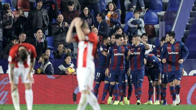 El Levantegoleó alAthletic de Bilbao en el estadio Ciudad de Valencia. Los locales pasaron por encima de los de Berizzo, que se hunden aún más en la tabla y ya están a tres puntos de la salvación. Chema, Campaña y Roger marcaron para un Levante que se mete en Europa, a dos puntos del Real Madrid