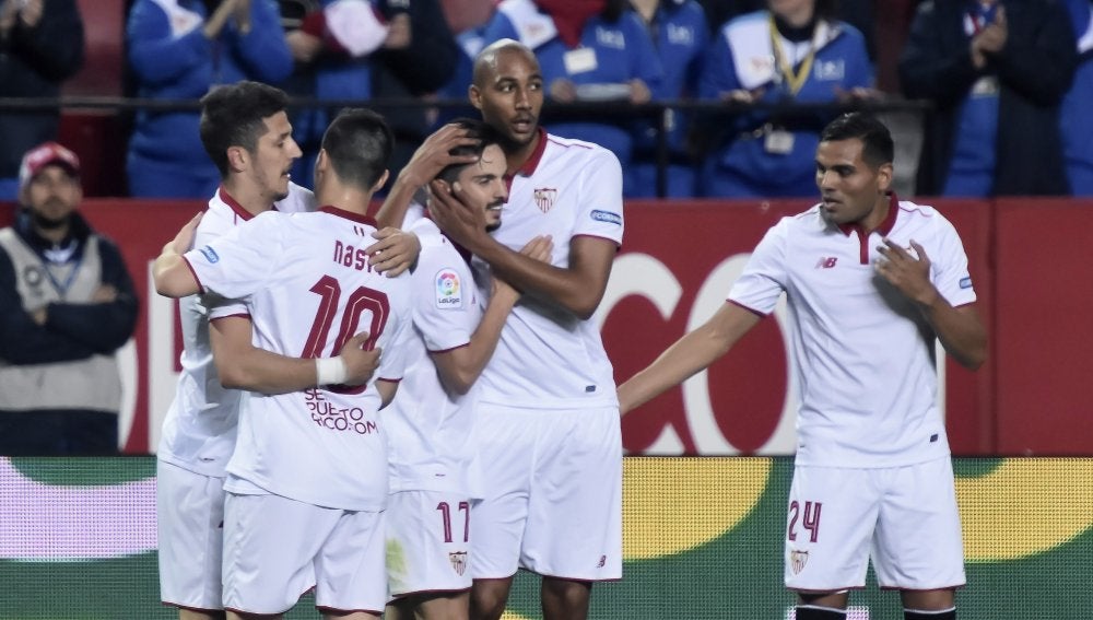 El equipo andaluz, que encontró la tranquilidad en la prolongación con un gol de Vitolo, afrontó la primera cita de tres muy seguidas y todas ellas trascendentes, pues la visita del conjunto eibarrés era una dura prueba ante un rival que es la revelación del campeonato y después el miércoles recibe al Leicester inglés en los octavos de la Liga de Campeones para rematar en el Benito Villamarín ante el Betis en el derbi hispalense.