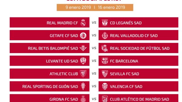 Ha tenido lugar el sorteo de la Copa del Rey con cruces muy interesantes de cara a los octavos de final. La ida de los partidos se jugará el 9 de enero y la vuelta el día 26.