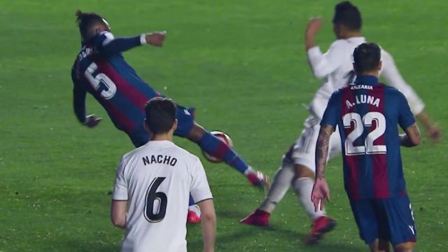 Doukouré y Casemiro protagonizaron una acción en la que el árbitro consideró que el jugador del Levante había cometido penalti sobre el madridista, y en la que el futbolista de Costa de Marfil sufrió una rotura del ligamento cruzado anterior de la rodilla derecha, que le mantendrá sin jugar hasta la próxima campaña.
