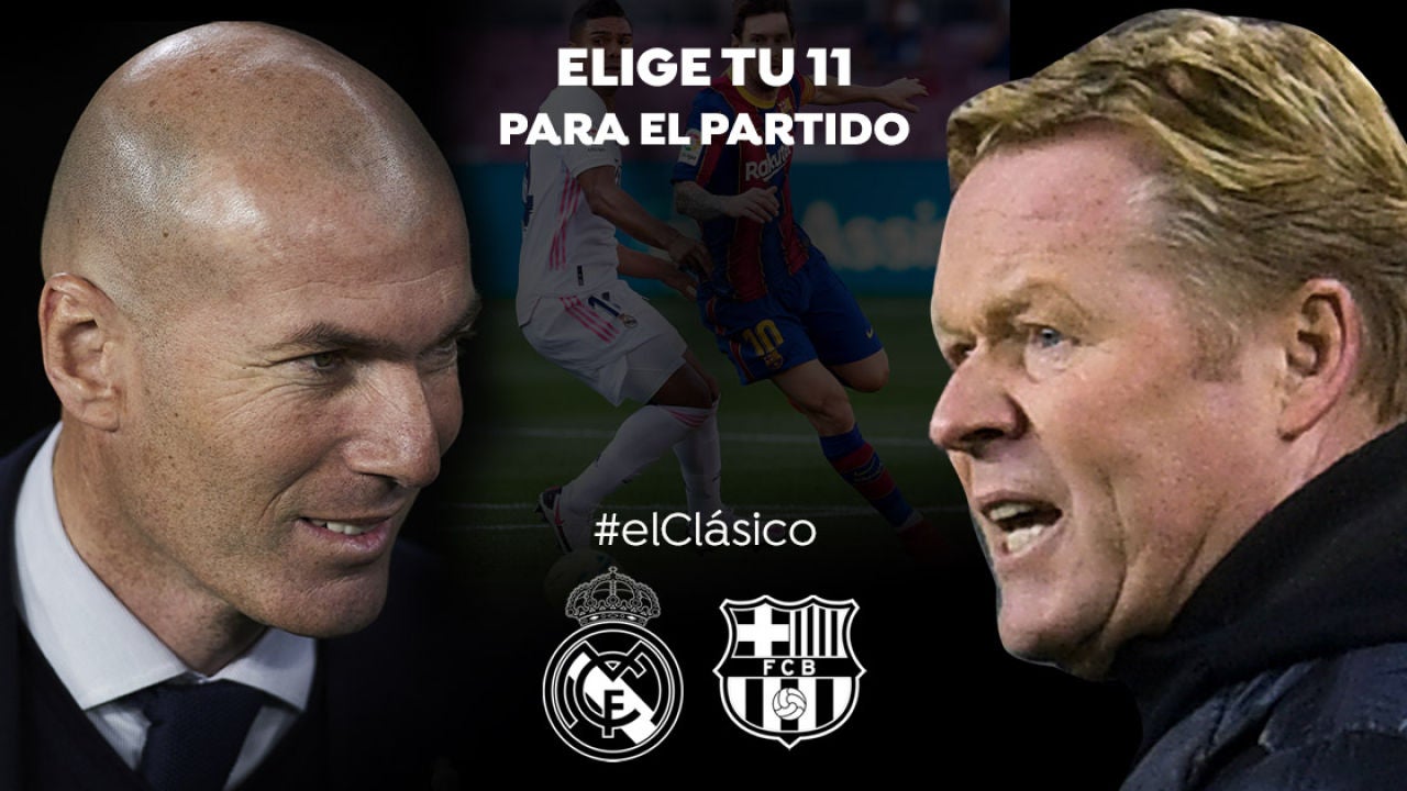 Real Madrid y Barcelona juegan el Clásico de la Liga Santander en el Alfredo di Stéfano. ¿Cuál es tu once ideal? ¡Haz de Zidane y Koeman y construye tu alineación para el partidazo de Liga!.