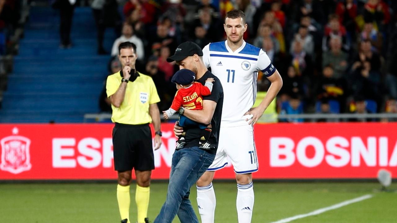David Silva recibió un más que merecido homenaje de la selección española de fútbol antes del partido contra Bosnia. En Gran Canaria, en su 'casa', y acompañado por su hijo, el jugador del Manchester City realizó el saque de honor del envite. Además, le entregaron una placa con una camiseta que conmemora sus 125 encuentros con España.