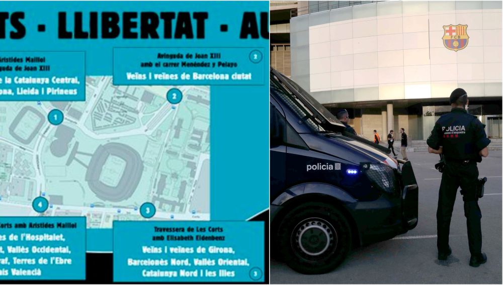 La Avenida Juan 23 a la altura de la Masía, la Avenida Juan 23 con Arístides Maillol (donde estaba el Mini Estadio), Aristides Maillol con Travessera de les Corts, y Travesera de les Corts con la calle Elisabeth Eidenbenz. Esos son los cuatro puntos fijados por Tsunami Democràtic para tratar de boicotear el Clásico entre Barcelona y Real Madrid el próximo 18 de diciembre.