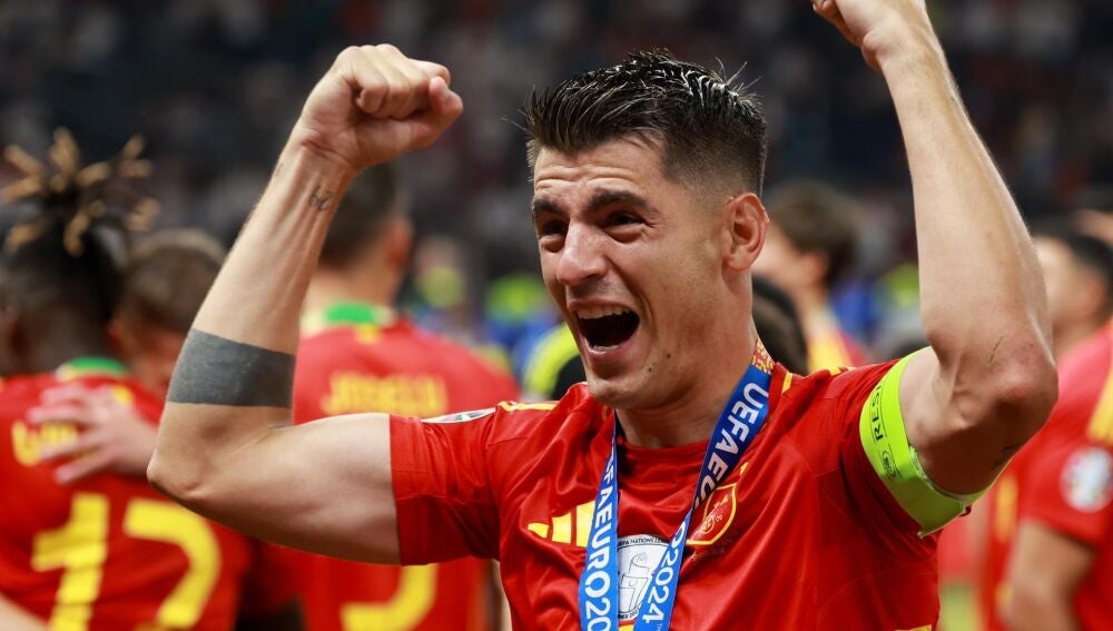 El capitán de La Roja, Álvaro Morata recibió el trofeo de las manos del rey Felipe VI y lo alzó al cielo de Alemania acompañado de sus exultantes compañeros de selección y con la celebración de la marea roja que se encontraba en las gradas del estadio como sonido ambiente.