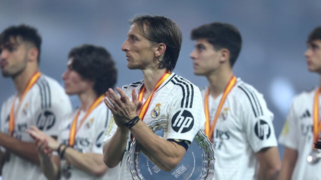 Florentino Pérez, presidente del Real Madrid, consoló al propio Luka Modric durante la entrega de trofeos después de la dura derrota: "Alguna vez tenemos que perder una final, ¿no?", le dijo al presidente merengue al futbolista croata de 39 años en una imagen captada por las cámaras de Fútbol en Movistar Plus+.