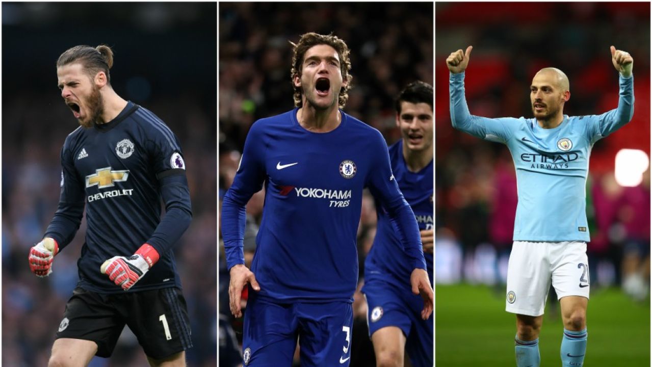 Cinco futbolistas del Manchester City, tres del Tottenham, uno del Manchester United, uno del Chelseay uno del Liverpoolforman el equipo del año de la Premier League, con tres españoles: De Gea, Silvay Marcos Alonso.