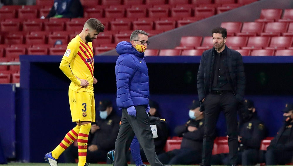 Además, a los de Koeman se les acumulan los problemas. Gerard Piqué se retiró al borde de las lágrimas tras lesionarse en un espeluznante choque con Correa en el que se puede ver cómo al capitán culé se le gira la rodilla.
