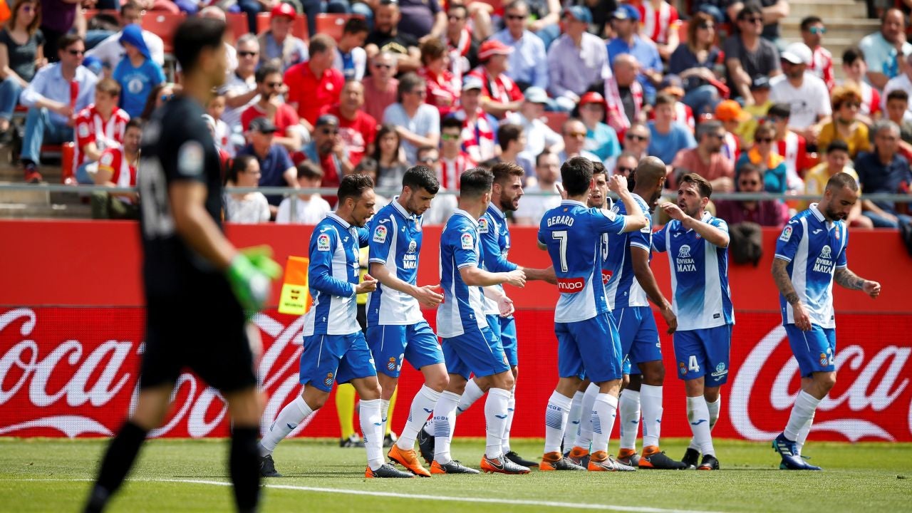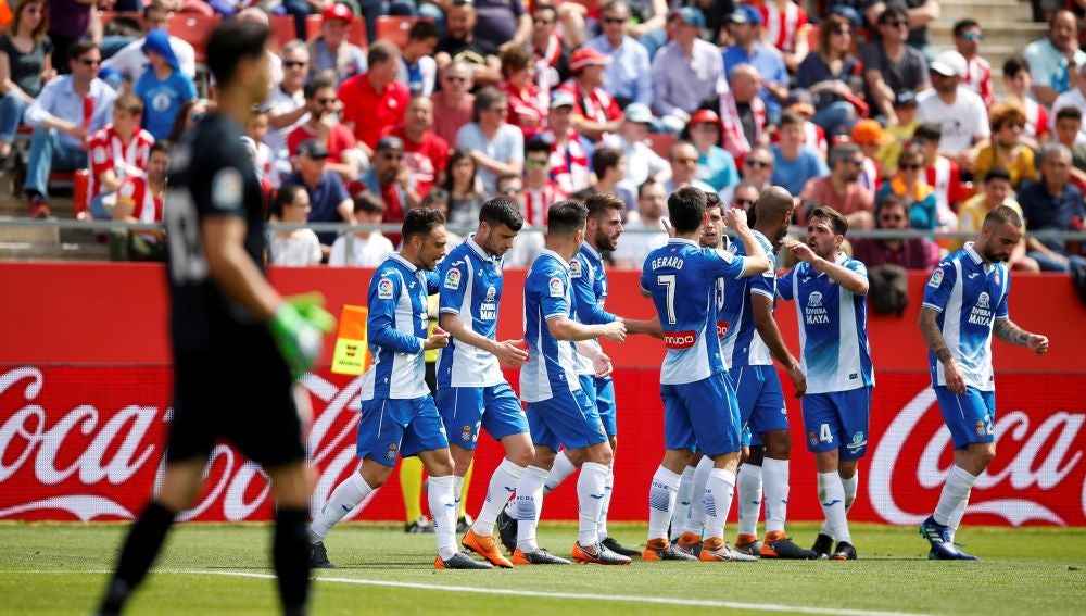 Espoleados por una afición que en una enorme pancarta se declaraba "enamorada del Girona, ahora y siempre", los futbolistas de Pablo Machín, conscientes de la necesidad de repetir la victoria obtenida en la primera vuelta en el RCDE Stadium para mantener vivas las aspiraciones de clasificarse para la Europa League, controlaron los tiempos del encuentro desde el silbido inicial.