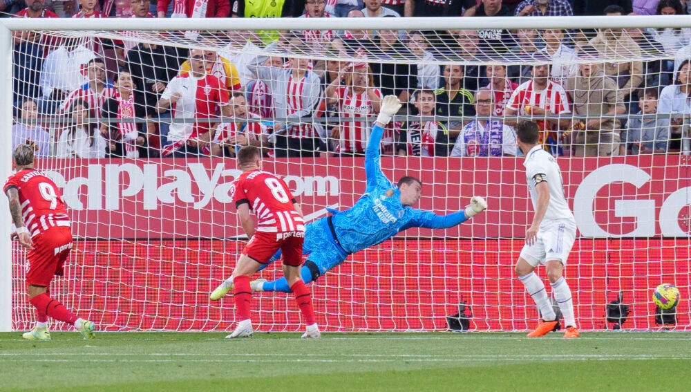 Saca Rüdiger otro envío envenenado al área blanca. El Girona buscando la contra.