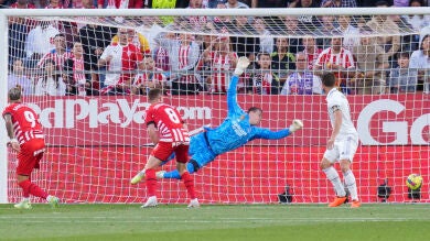 Girona - Real Madrid: 1-0. Centro de Miguel Gutiérrez al corazón del área y golpea primero de cabeza el Girona con un cabezazo de Taty Castellanos.