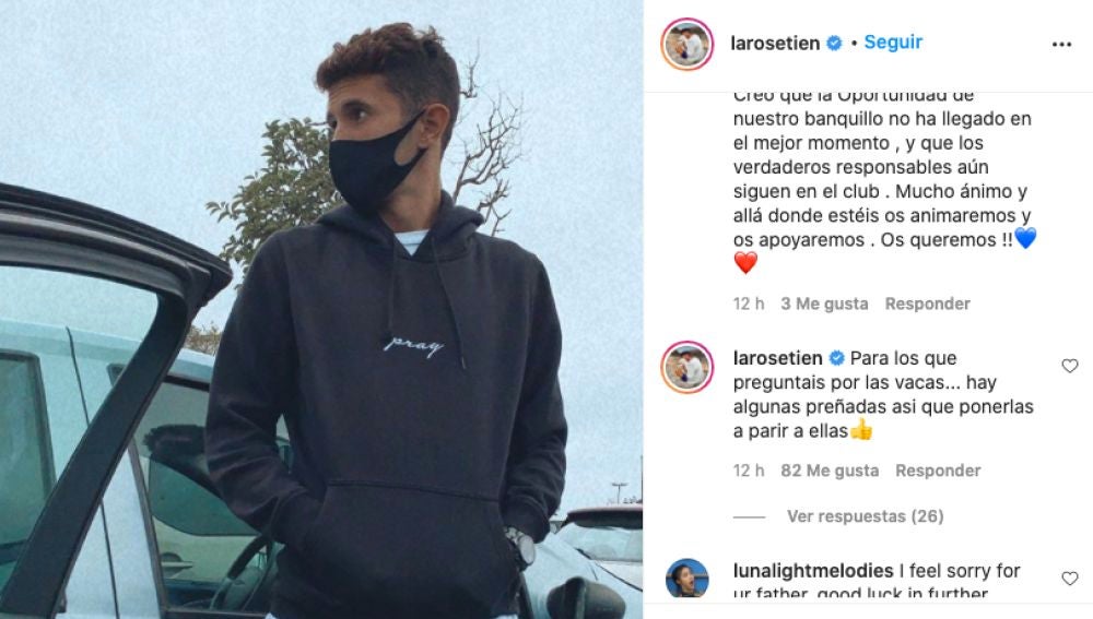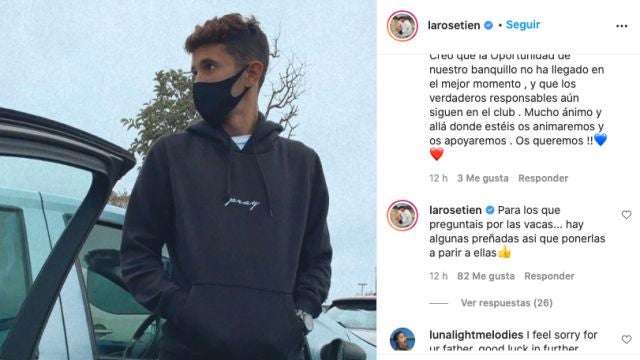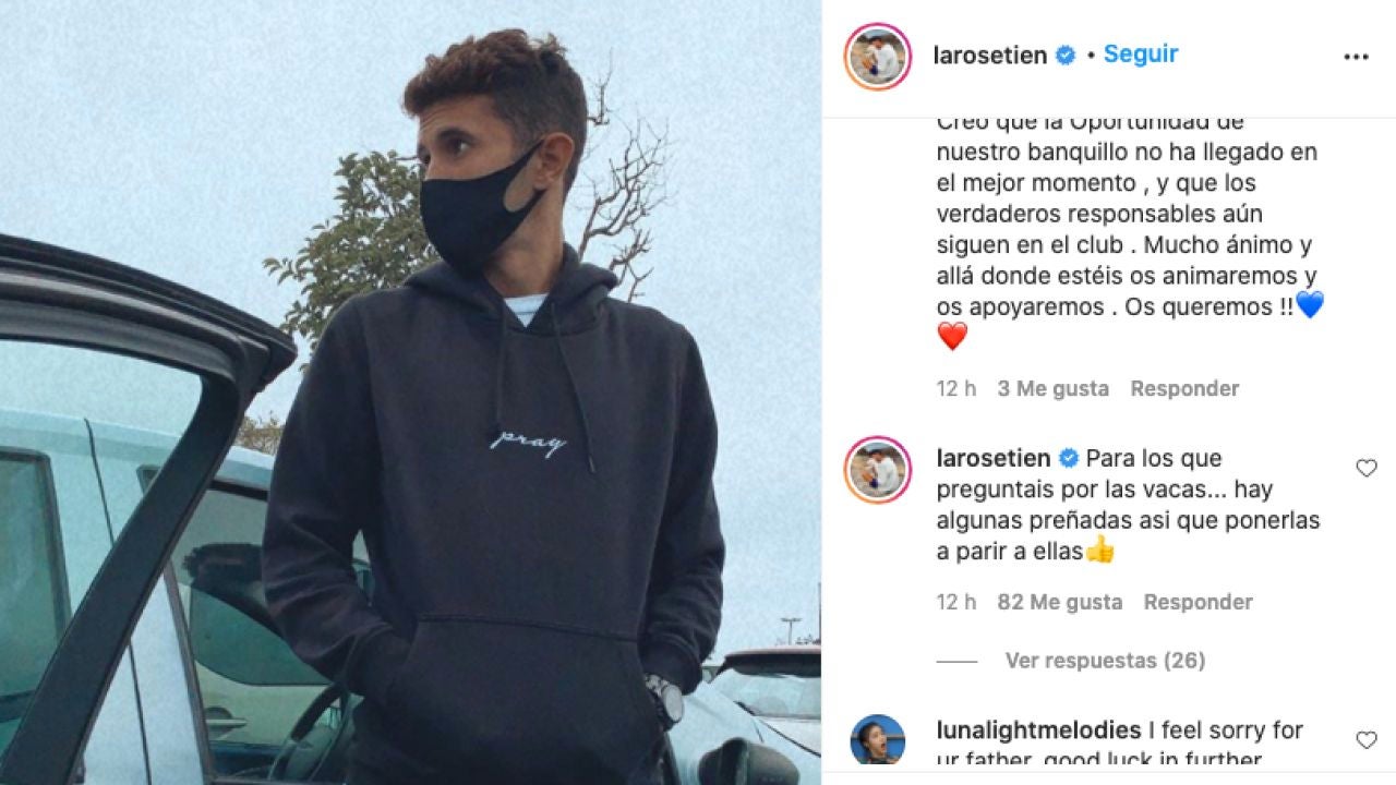 No corren buenos tiempos para la familia Setién. Quique Setién fue cesado de su cargo de entrenador del Barcelona este lunes y su hijo, Laro, explotó en las redes sociales tras las numerosas burlas que acumula su famoso vídeo con las vacas y la Champions.