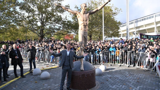 El delantero sueco del Galaxy de Los Ángeles Zlatan Ibrahimovic inauguró en Malmoe una estatua suya erigida por la Federación sueca como homenaje a su carrera.