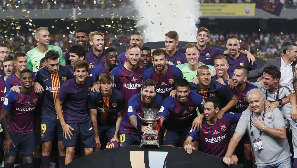 Andrés Iniesta quiso felicitar al Barcelona por la Supercopa conseguida frente alSevilla en Tánger. El excapitán azulgrana colgó un mensaje en las redes sociales para dar la enhorabuena a sus antiguos compañeros: "¡Muchísimas felicidades! ¡Que sea el primero de muchos en esta temporada! Abrazo desde Japón".