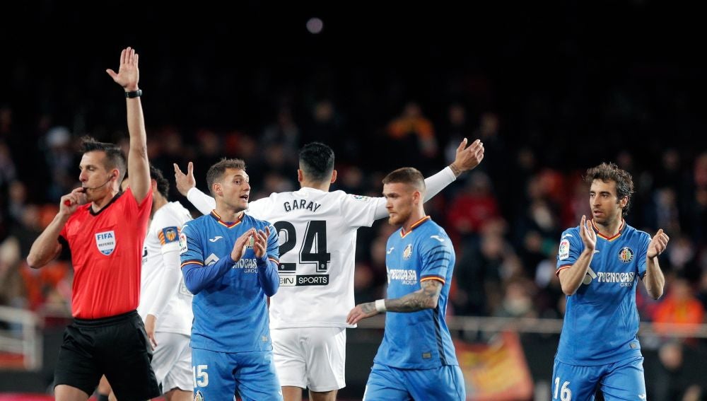 El colegiado Estrada Fernández tardó dos horas en redactar el acta tras el pitido final en Mestalla. Cuatro futbolistas quedan especialmente retratados. Se trata de los getafenses Bruno, Damián Suárez y Mata y del valencianista Diakhaby.
