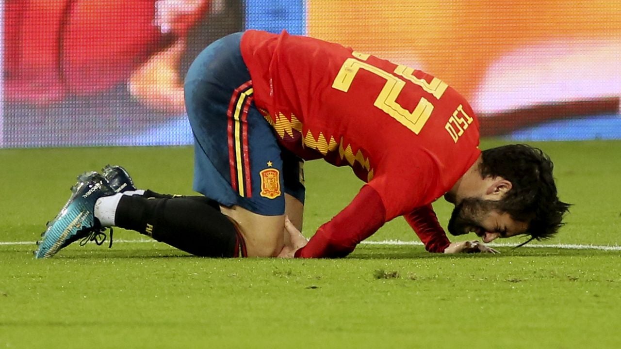 Baja en el partido que hoy disputa la selección española en San Petersburgo ante Rusia por una durísima entrada recibida ante Costa Rica el pasado sábado en La Rosaleda, el centrocampista del Real Madrid se ejercita separado del grupo y hace trabajo de recuperación.