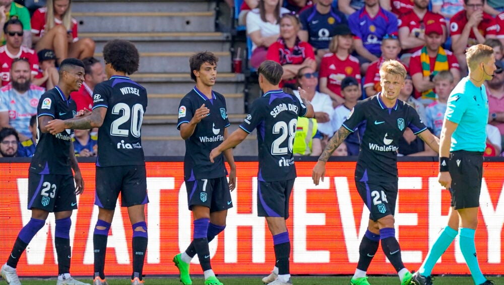 El Atlético de Madrid se impuso 1-0 a los 'red devils' con un tanto del joven talento portugués en el tramo final. Otro luso, Cristiano, fue protagonista sin estar presente por su posible idilio veraniego con los rojiblancos.