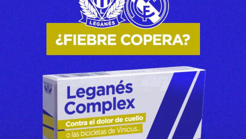 Pocas dudas hay acerca del enorme ingenio que tienen los que se encargan de llevar las redes en el Leganés. El club pepinero, como acostumbra, ha vuelto a sorprender con un divertido cartel para promocionar la vuelta de Copaante el Real Madrid. "Leganés Complex, contra el dolor de cuello o las bicicletas de Vinicius", reza el medicamento.