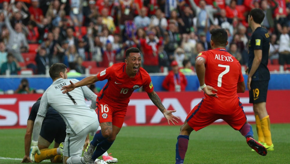 Hubo momentos en los que el equipo latinoamericano se vio superado y pareció que los australianos podían dar la sorpresa y clasificarse para las semifinales, para lo que necesitaban ganar por dos goles de diferencia. Pero el dios del fútbol no sonrió a los australianos y cuando peor lo estaba pasando Chile, marcó Martín Rodríguez tras recibir un pase de cabeza de Alexis, que se elevó por encima de los gigantescos centrales rivales (min.67).