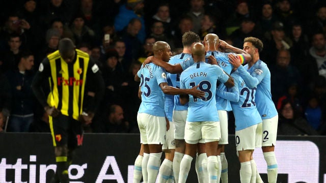 El City acabó despejando balones de su área con un par de córneres en los últimos instantes, pero se llevó los tres puntos de Watford. Los 'Sky Blues' aumentan su racha de partidos invictos a 21, siguen en la cabeza de la tabla, con 41 puntos, y meten presión a un Liverpool que de perder este miércoles contra el Burnley se quedará a cinco puntos del líder.