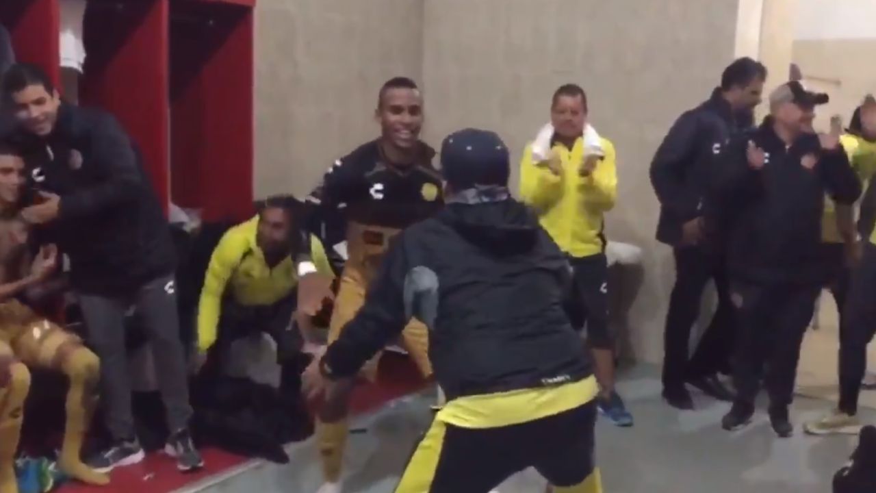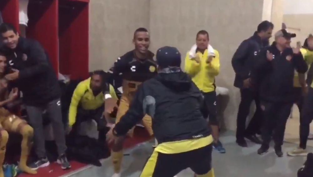 Maradona apareció en el partido del Dorados del Sinaloa contra el Mineros apoyado en una muleta. El 'pelusa', que ya no tiene cartílagos en sus piernas, deberá operarse en los próximos meses, pero eso no le impidió bailar en la victoria de su equipo.