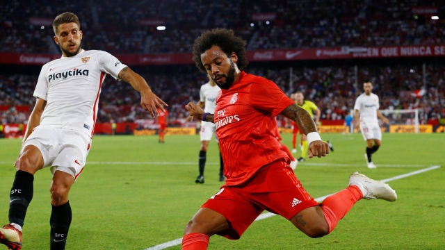 Marcelo cayó lesionado el miércoles en el estadio Ramón Sánchez Pizjuán en la derrota del Real Madrid ante el Sevilla, cuando en la segunda mitad sufrió un pinchazo en el gemelo que le impidió acabar el encuentro.