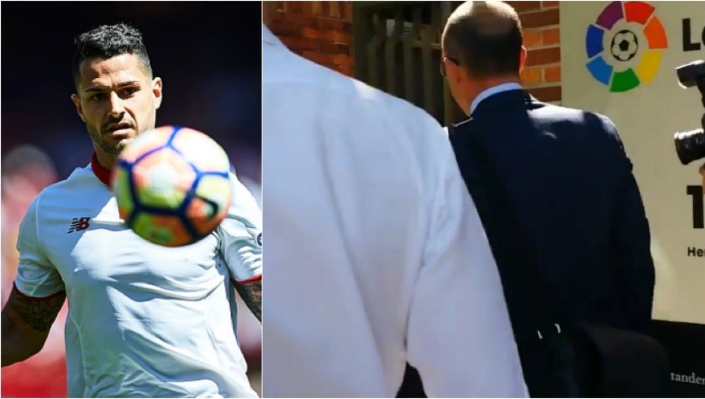 El extremo internacional Víctor Machín 'Vitolo' se ha personado en la sede de la Liga de Fútbol Profesional (LFP), acompañado de su representante, Margarita Garay, para cerrar su desvinculación del Sevilla, club que no obstante le espera esta tarde en la capital andaluza.