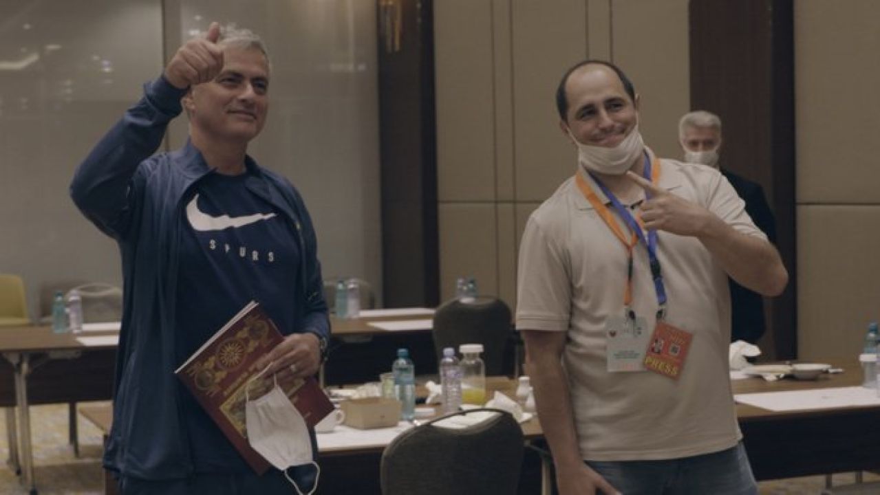 Un periodista macedonio preguntó al entrenador del Tottenham, Mourinho, si podría hacerse una foto con él en recuerdo de su padre: "Le quería saludar de su parte, aunque él ya está en el cielo".