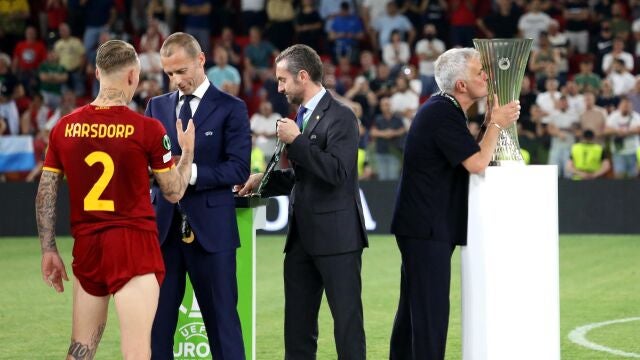 El palmarés europeo del entrenador de la Roma queda así: Dos Champions League (con el Inter en 2010 y con el Oporto en 2004), dos Europa League (con el Oporto en 2003 y con el Manchester United en 2017) y una Conference League con la Roma este 2022.