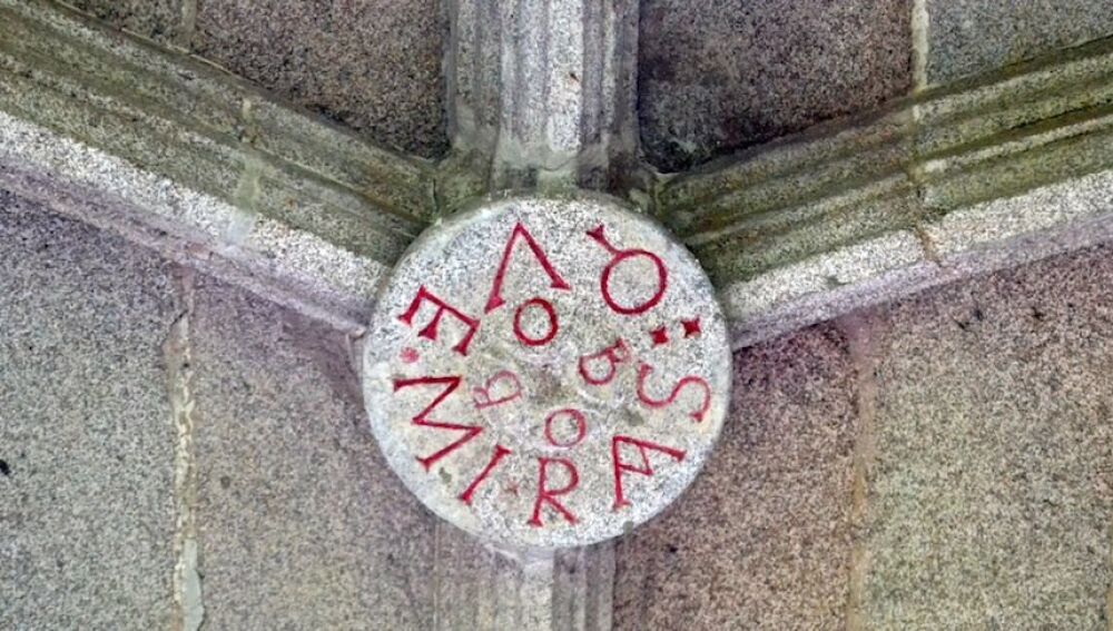Esta inscripción se encuentra en uno de los medallones del monasterior de San Julián de Samos, del siglo VI y ubicado en Lugo.
