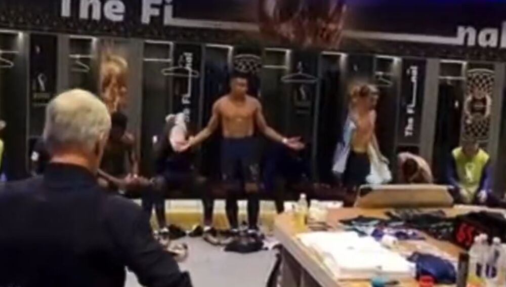 El primero en tomar la palabra había sido el seleccionador Didier Deschamps, que se encargó de recordar a sus jugadores que estaban disputando una final: "Necesitamos más precisión en los pases, más precisión en las decisiones. No sois compactos. Tenéis que estar más cerca uno del otro. ¡No estáis allí! No estáis en ninguna segunda jugada. ¡No estáis jugando una final del Mundial!", afirmó visiblemente cabreado.