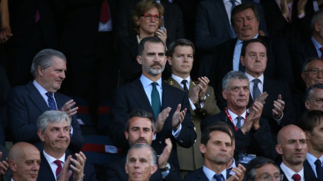 Antes de que arrancase la final de la Copa del Rey, parte del público asistente al Vicente Calderón pitó el himno de España. Felipe VI, presente en el palco del estadio, no torció el gesto.