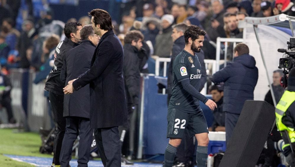 Isco Alarcón y Santiago Solari escenificaron en Butarque la fría relación que existe entre ambos actualmente. El malagueño, que fue al fin titular en un partido con Solari, no ofreció su mejor versión y cuando fue sustituido por Cristo no miró ni saludó a Solari. El entrenador blanco tampoco realizó ningún gesto.