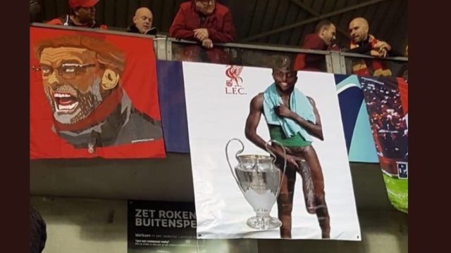 En concreto, la pancarta mostraba a Origiconvertido en el viral 'Negro Del Whatsapp' junto con la Copa de la Champions. El Liverpool condenó la exhibición de dicha pancarta.