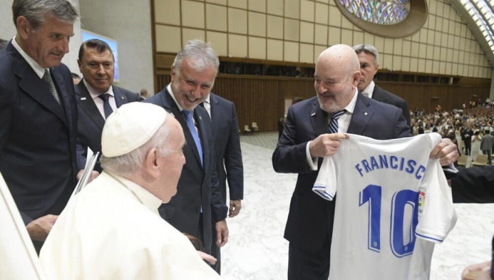 El pontífice, gran aficionado al fútbol, compartió un breve encuentro con los dirigentes del Tenerife y dejó una divertida anécdota referente a uno de los regalos traídos desde las Islas Canarias.