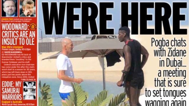El técnico del Real Madrid Zinedine Zidane viajó a Dubai para acudir a una conferencia sobre Inteligencia Artificial en el deporte celebrada el pasado fin de semana. Sin embargo, el diario inglés Mirror Sport ha publicado una fotografía en la que se confirma que el francés, además de acudir a la conferencia durante su estancia en los Emiratos Árabes, se reunió con el jugador del Manchester United Pogba.