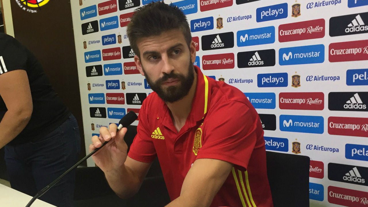 Gerard Piqué ofreció una rueda de prensa ante los medios de comunicación tras la polémica de los últimos días con la selección española y el 1-O. El central afirmó que se queda en la Selección, aunque se planteó dejarlo, y también dijo que le duele que se dude de su compromiso.
