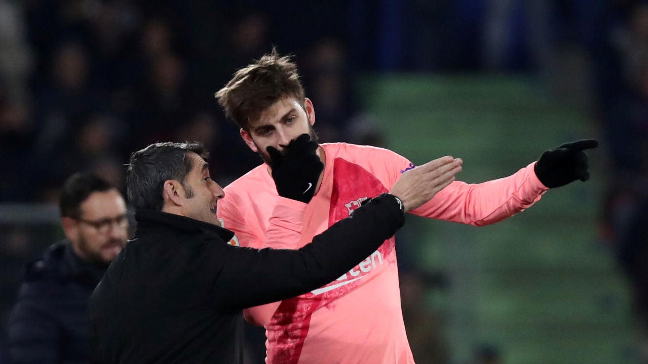 Gerard Piqué, central internacional del Barcelona, valoró positivamente la victoria lograda en Getafe, restó importancia al gol anulado al Getafe sin consultar al VAR y sobre la continuidad de Ernesto Valverde dijo creer que la opinión del vestuario es que le "gustaría que siguiese" la próxima temporada.